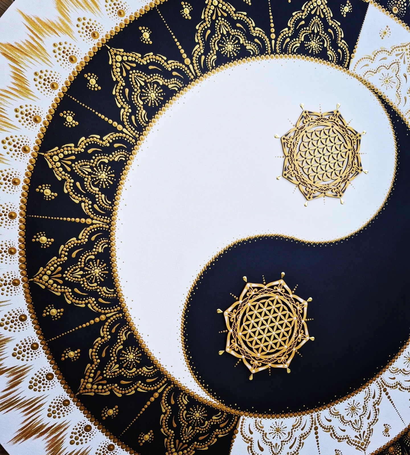 Le Yin-yang l’harmonie et l’équilibre par l’union des contraires deux composantes, opposées mais complémentaires, qui permettent d’approcher les phénomènes de la Vie et du Cosmos. Le yin et le yang ne peuvent exister l’un sans l’autre, et ne peuvent se définir que par association.