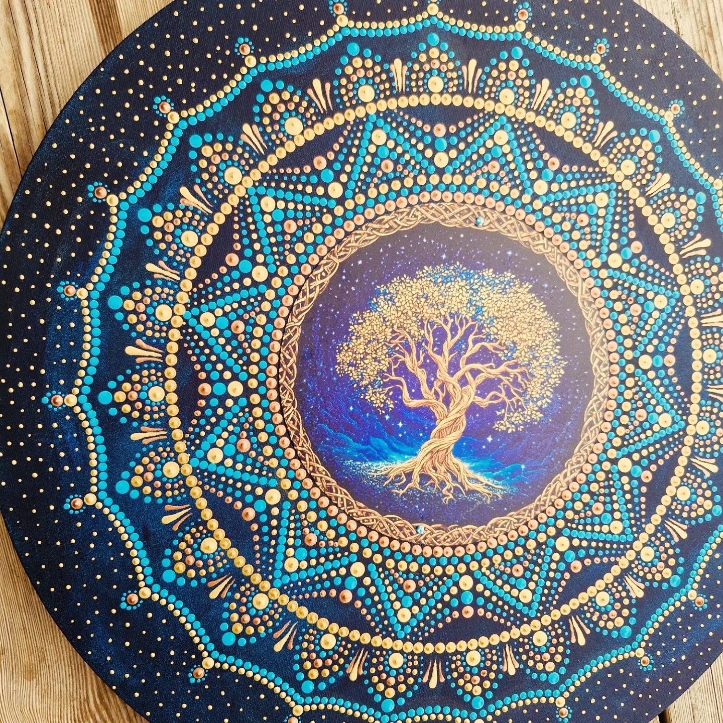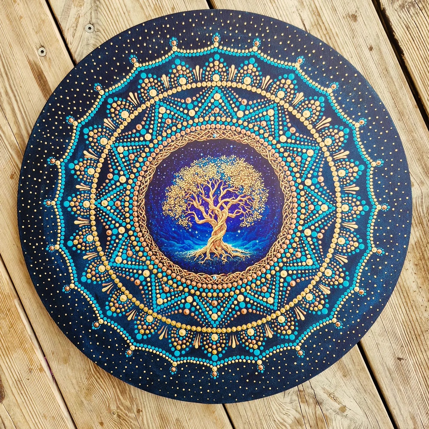 Peinture sur châssis entoilé coton 50cm de diamètre Arbre de Vie sur plaque Aluminium
