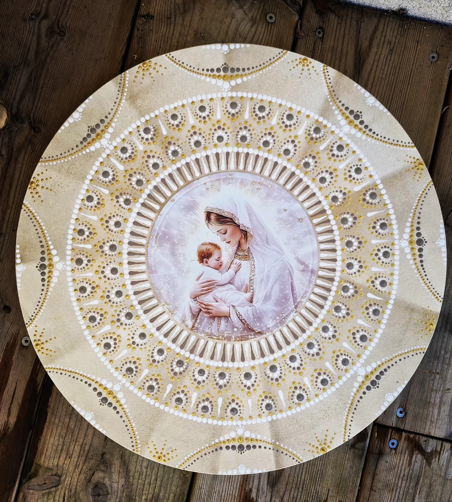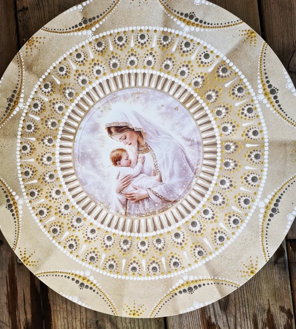 Peinture Vibratoire 50cm DISPONIBLE (Marie sur plaque Aluminium)