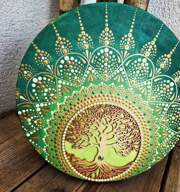 🌳 L'Arbre de Vie au cœur du cercle sacré, l’arbre déploie ses racines et ses branches comme un pont vivant entre la terre et la lumière, rappelant à l’âme sa capacité infinie de régénération.