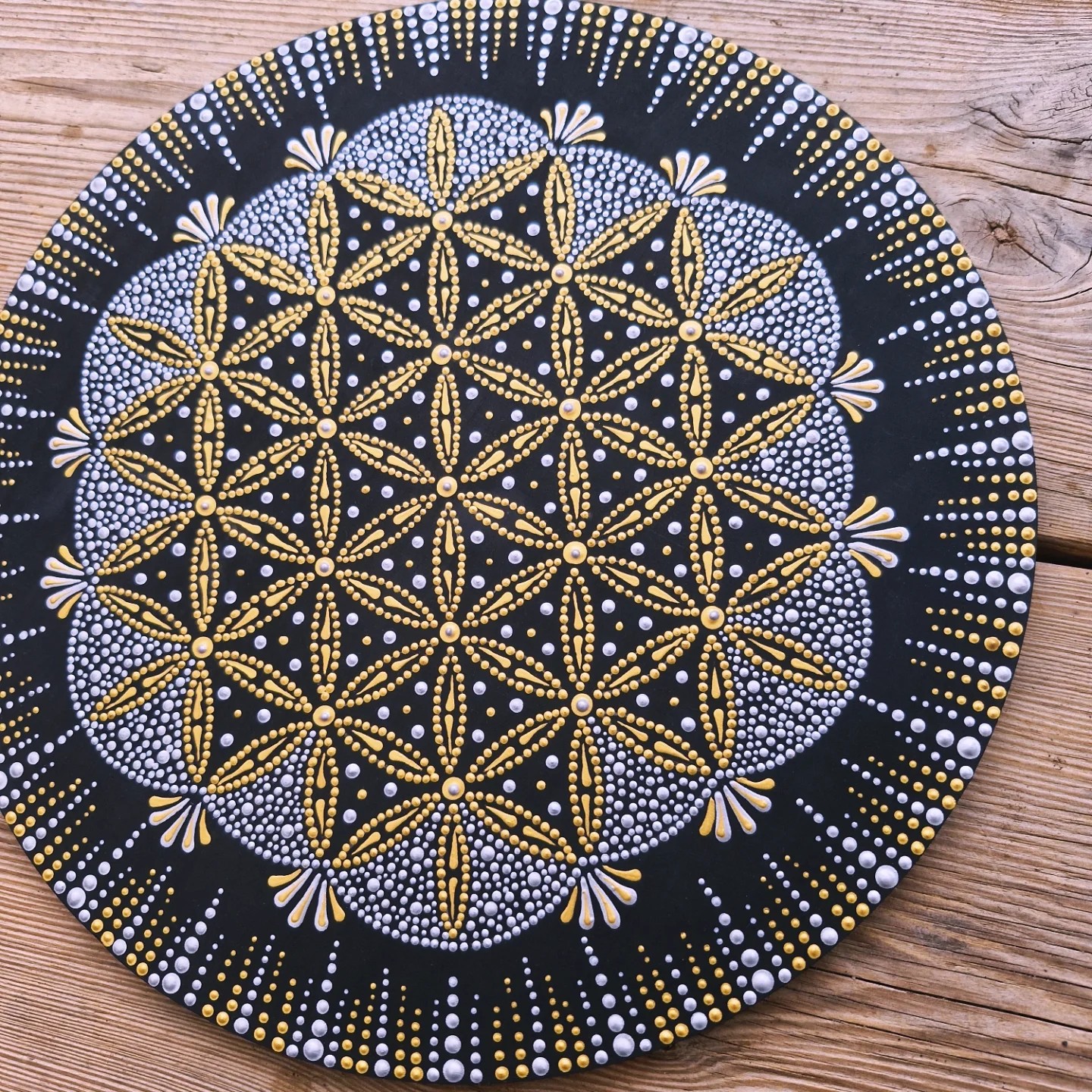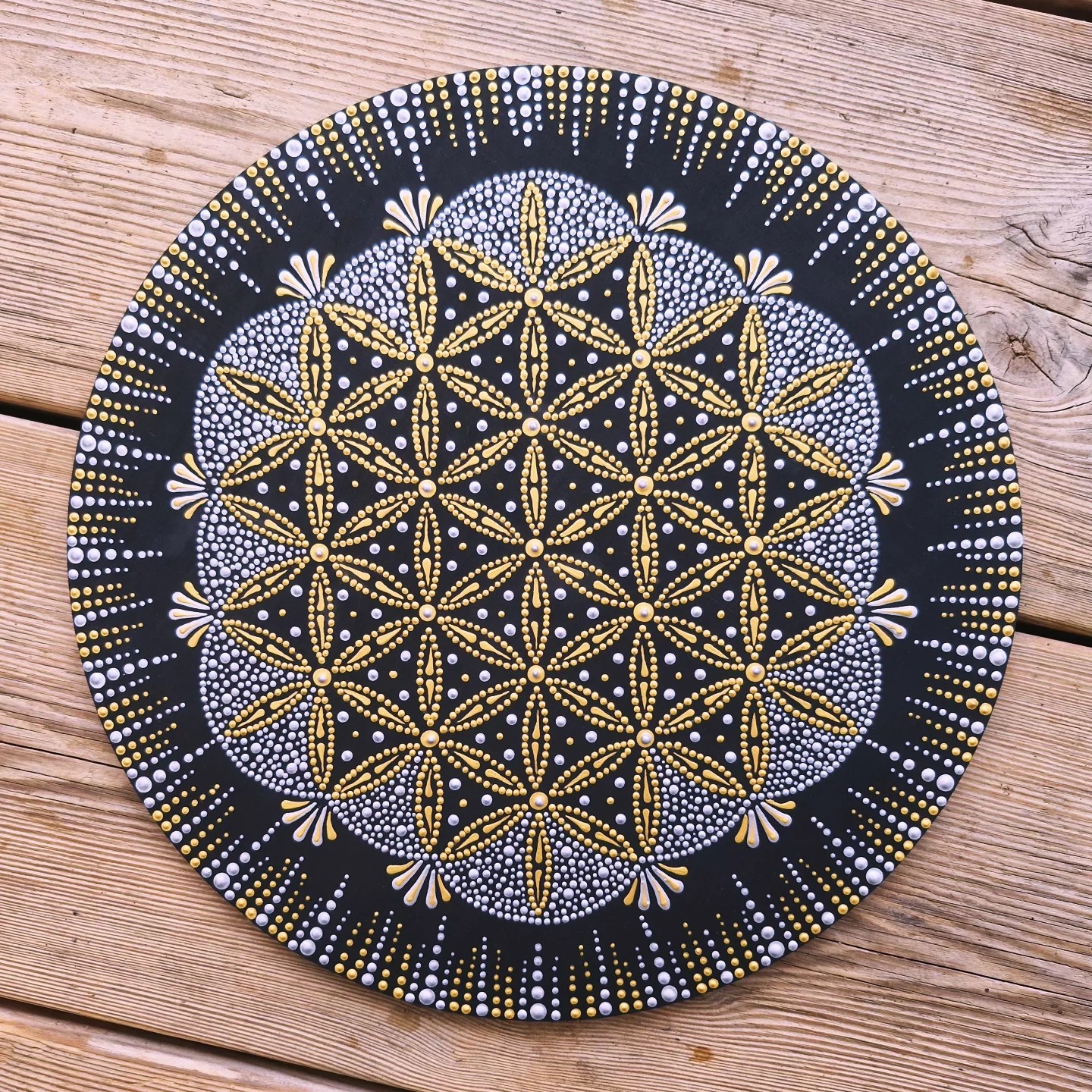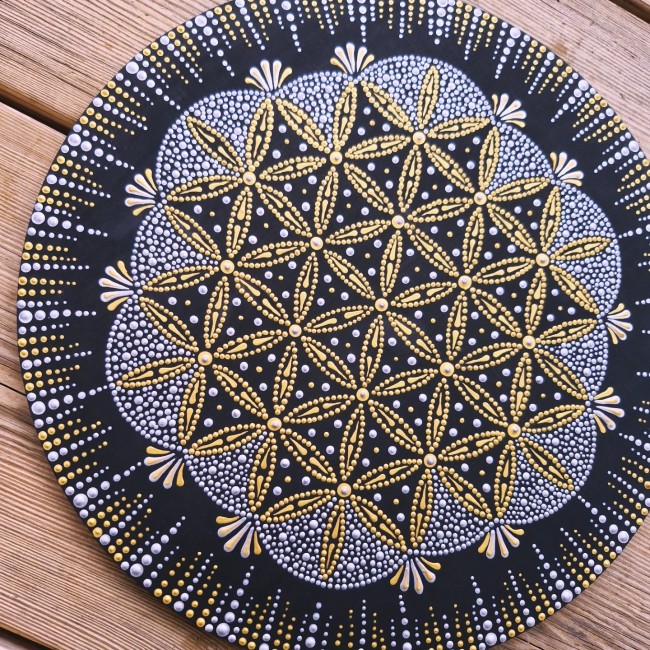 ✨️ Peinture Vibratoire Fleur de Vie sur plateau bois de 30 cm ✨️