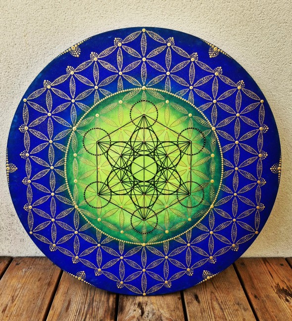 Peinture Vibratoire Metatron Fleur de Vie Chakras 100cm de diamètre