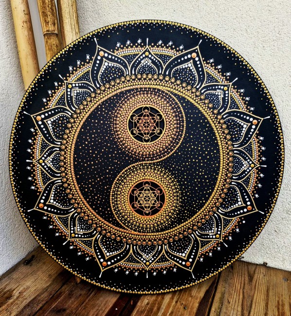 Peinture Vibratoire 70cm Yin Yang Cubes de Métatron