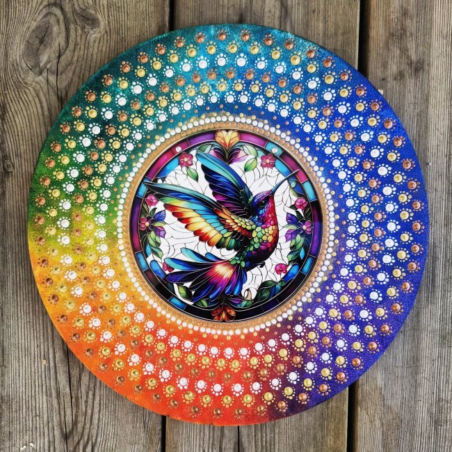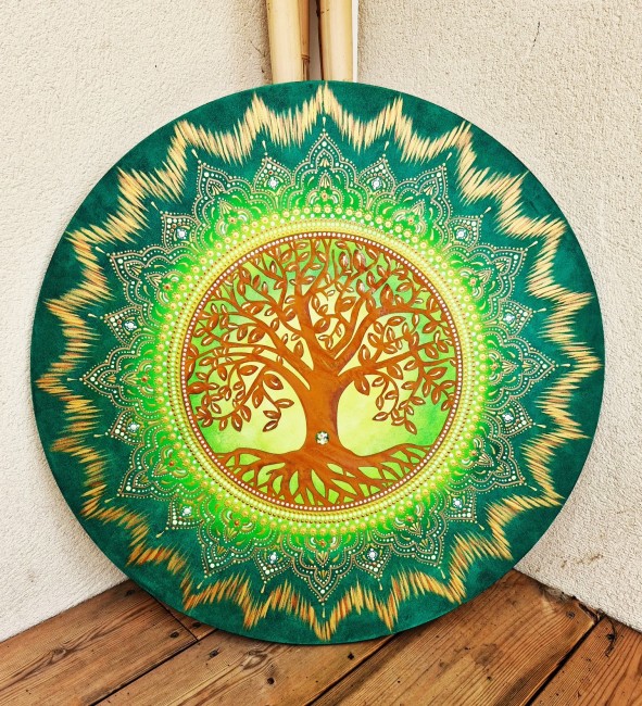 Peinture Vibratoire 30cm Arbre de Vie et sa pointe de Cristal