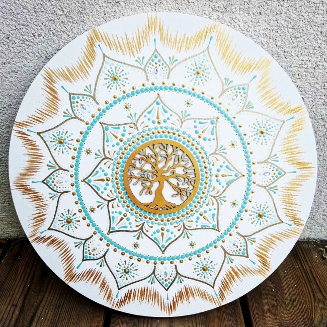 Peinture Vibratoire 30cm sur bois Fleur de Vie
