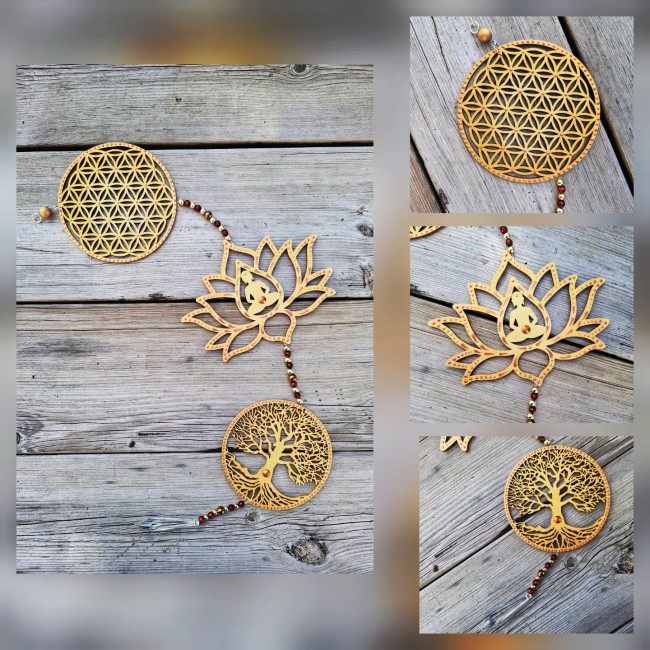 Suspensions Cristallines Avec Géométries Sacrées En Bois Feng Shui